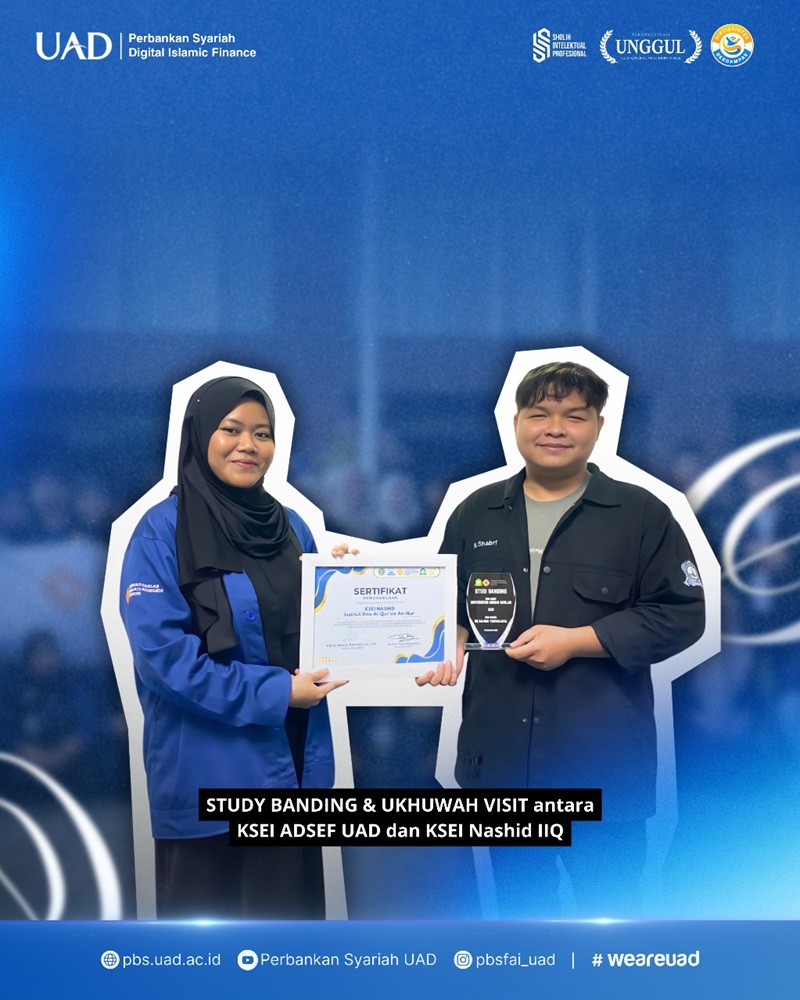 Kegiatan studi banding ditutup dengan penyerahan cendera mata, sesi foto bersama, serta doa penutup sebagai simbol terjalinnya hubungan baik antara KSEI PBS UAD dan IIQ. Suasana keakraban yang terbangun diharapkan menjadi fondasi kuat bagi kerja sama berkelanjutan di masa depan. Melalui kegiatan ini, KSEI PBS UAD berkomitmen untuk terus mengembangkan peran mahasiswa dalam memperkuat literasi dan praktik ekonomi Islam, sekaligus mendukung visi Program Studi Perbankan Syariah UAD dalam mencetak generasi muda yang unggul, berakhlak, dan berkontribusi nyata bagi pengembangan ekonomi Islam di Indonesia. (PBS)