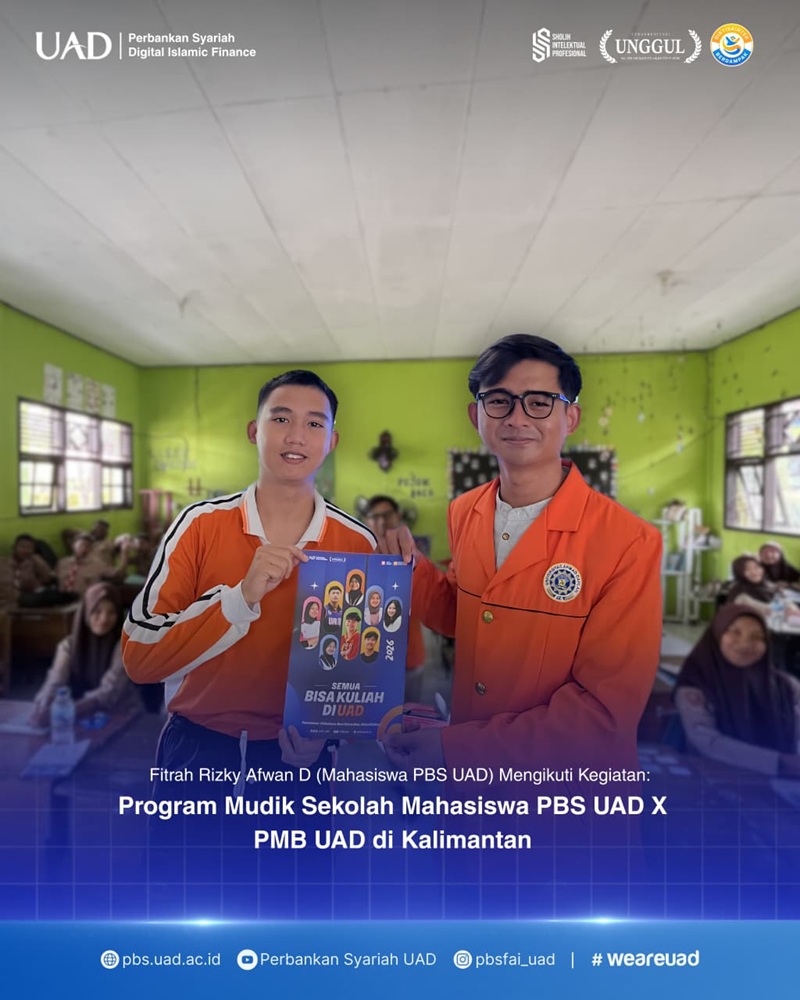 Yogyakarta – Mahasiswa Program Studi Perbankan Syariah (PBS) Universitas Ahmad Dahlan kembali menunjukkan kontribusi nyata dalam kegiatan edukasi dan pengabdian masyarakat melalui kunjungan sosialisasi pendidikan ke sejumlah sekolah menengah atas di Kalimantan Tengah. Kegiatan ini dilaksanakan oleh Fitrah Rizky Afwan, mahasiswa PBS UAD angkatan 2024, yang melakukan kunjungan ke beberapa wilayah strategis, yakni Pangkalan Bun, Kumai, dan Kabupaten Kotawaringin Barat.