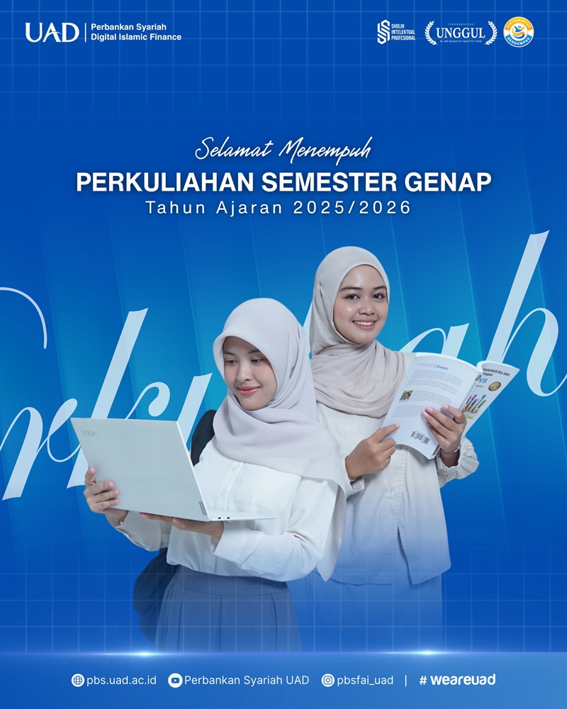 Para mahasiswa menyambut dimulainya perkuliahan dengan semangat baru. Banyak di antara mereka yang telah menetapkan target akademik untuk semester ini, seperti meningkatkan indeks prestasi, menyelesaikan tugas akhir, maupun mengikuti program pengembangan diri lainnya. Dengan dimulainya kegiatan belajar mengajar pada Semester Genap Tahun Akademik 2025/2026 ini, Prodi PBS UAD berharap seluruh mahasiswa dapat menjalani proses pembelajaran dengan optimal. Komitmen bersama antara dosen dan mahasiswa diharapkan mampu menciptakan suasana akademik yang produktif serta menghasilkan lulusan yang kompeten di bidang perbankan syariah dan keuangan Islam. (PBS)
